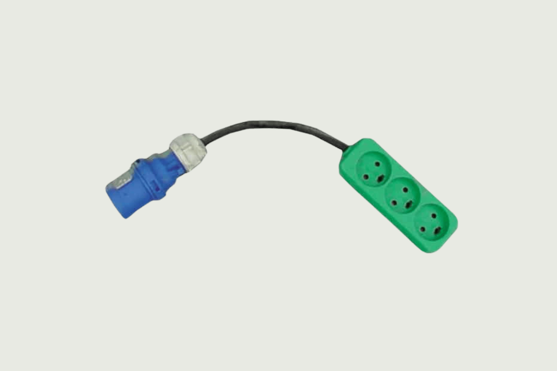 Adaptorkabel 1x 16 CEE blå han til 3 stk. 230V 1x 10A DK hun.