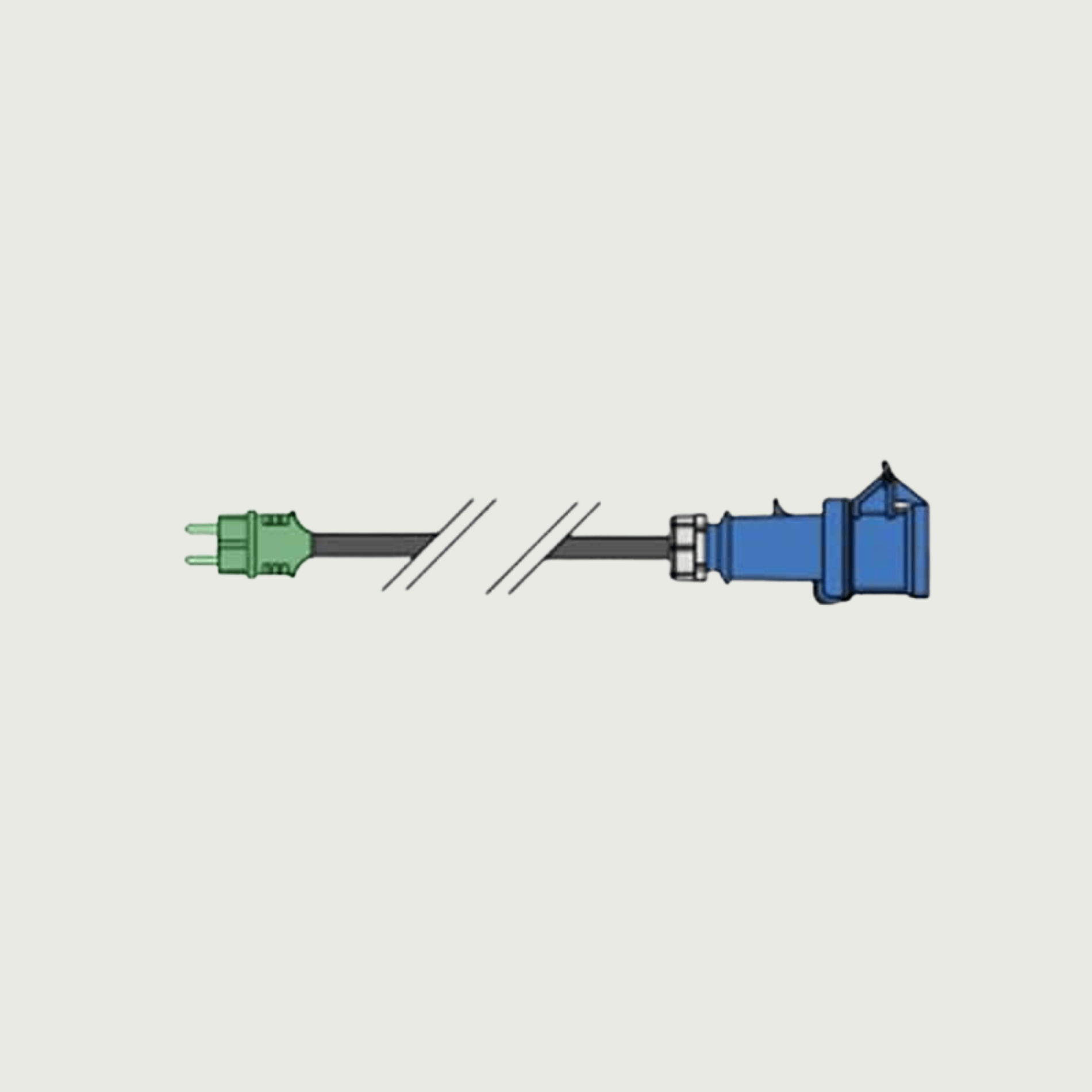 Adapterkabel DK-stik 230V grøn han til 230V 1x 16A CEE-hun.