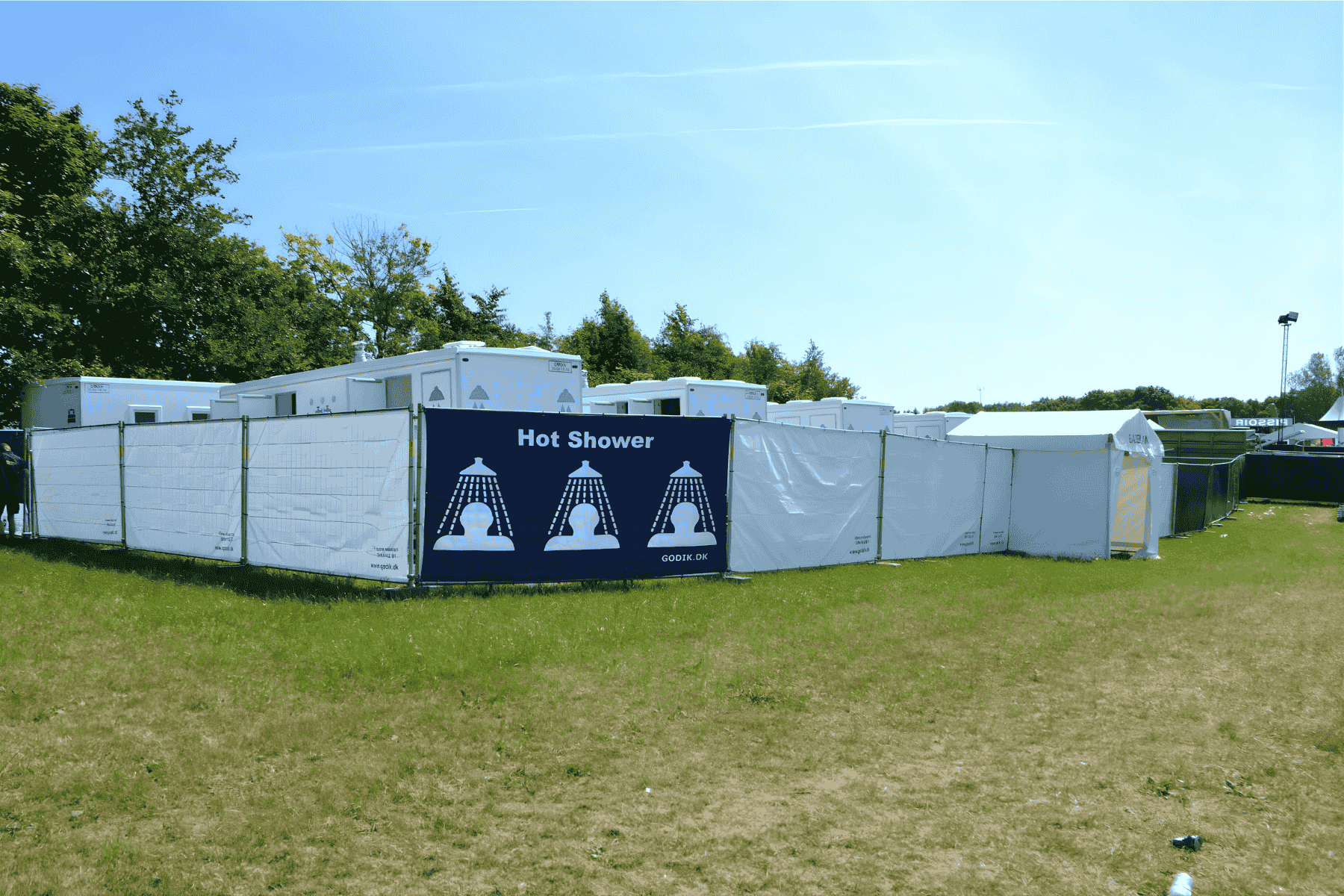 Komplet badeløsning til arrangementer – indeholder 16 badefaciliteter pr. enhed samt omklædningsområde med borde, spejle og el-tilslutning.