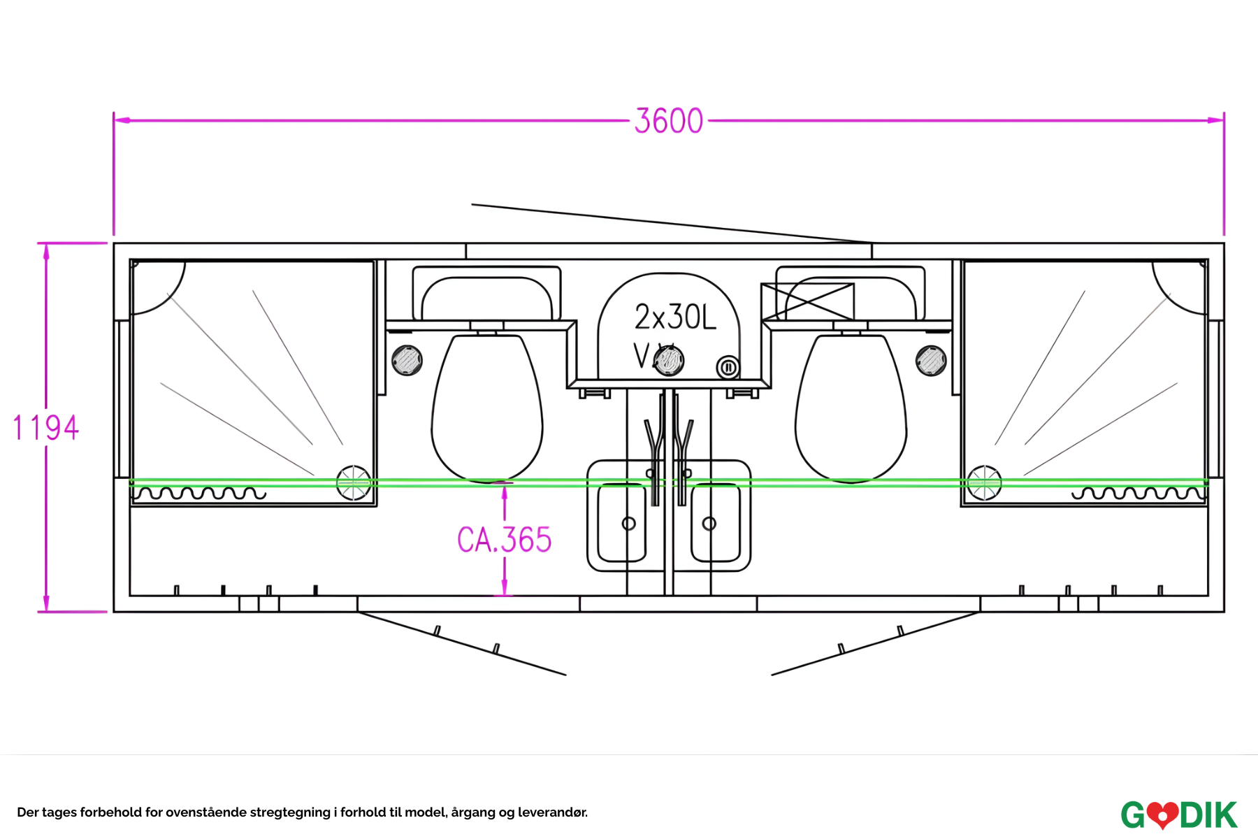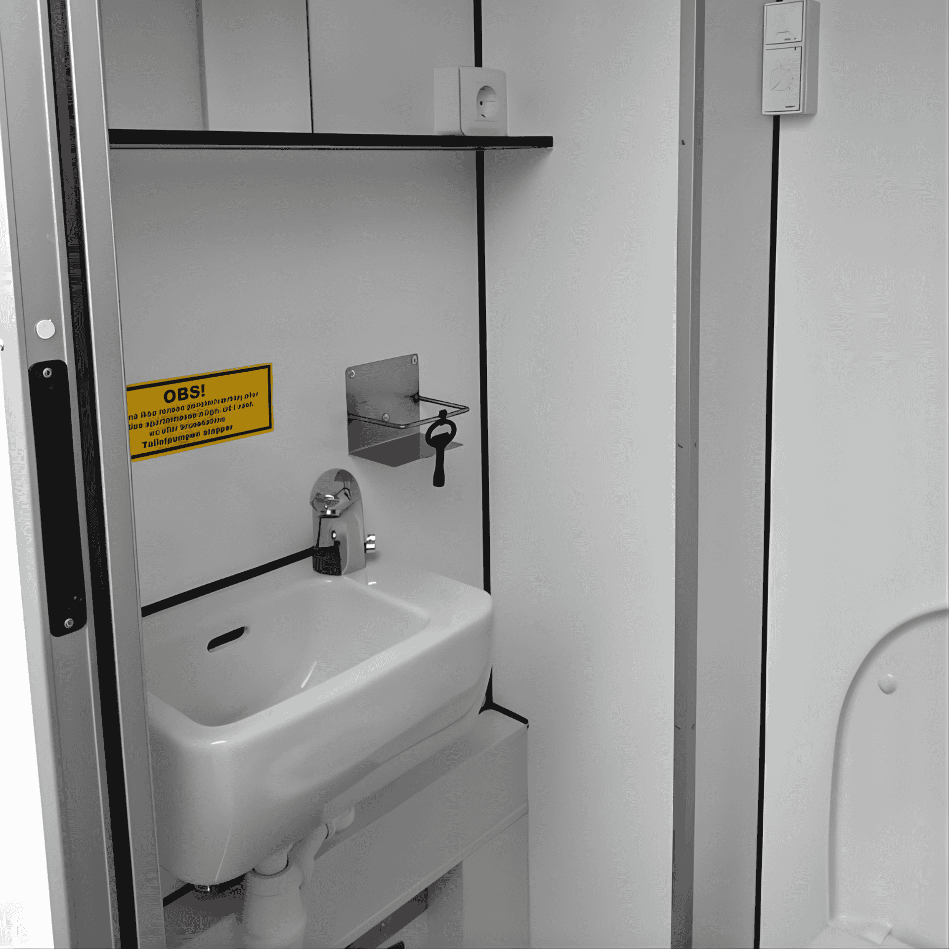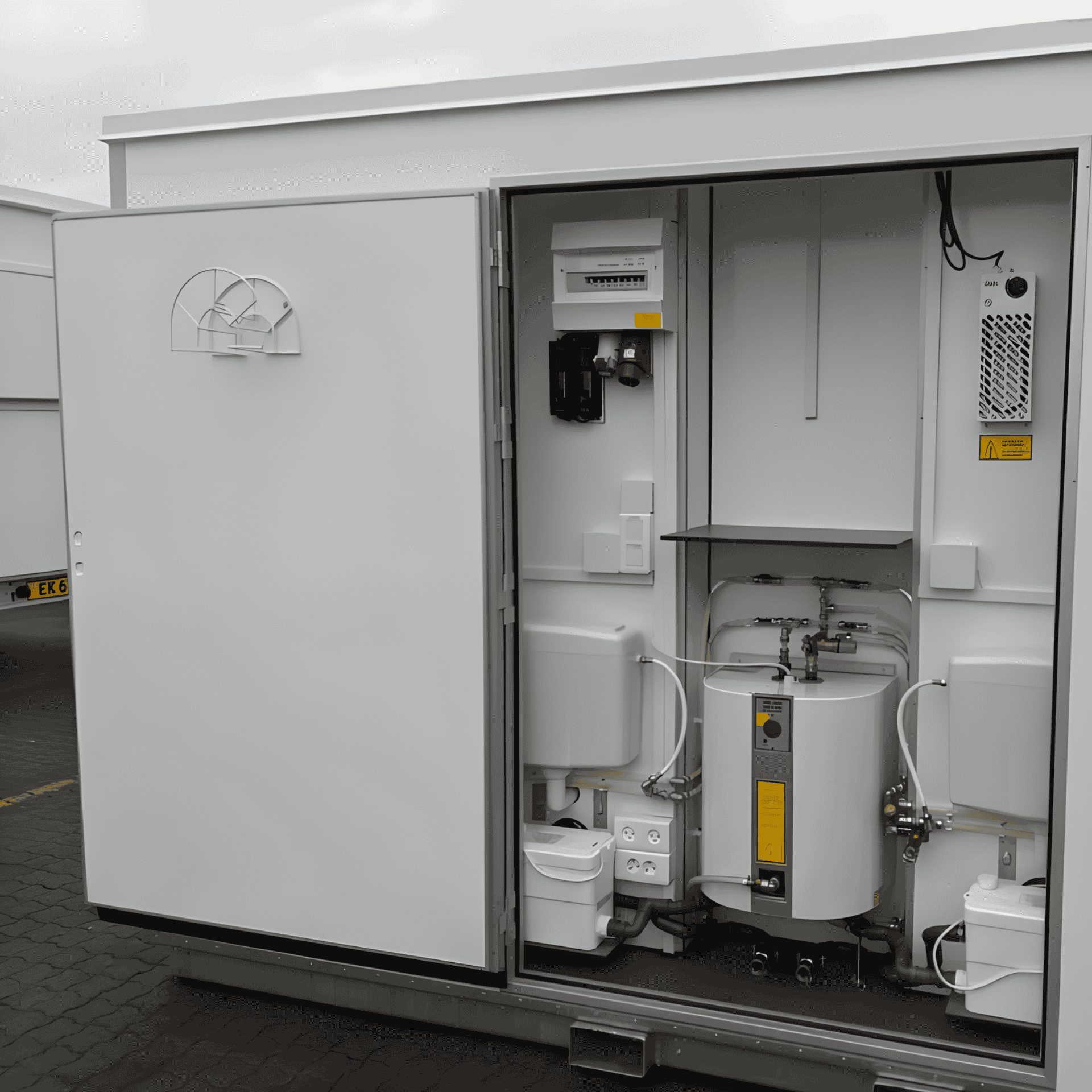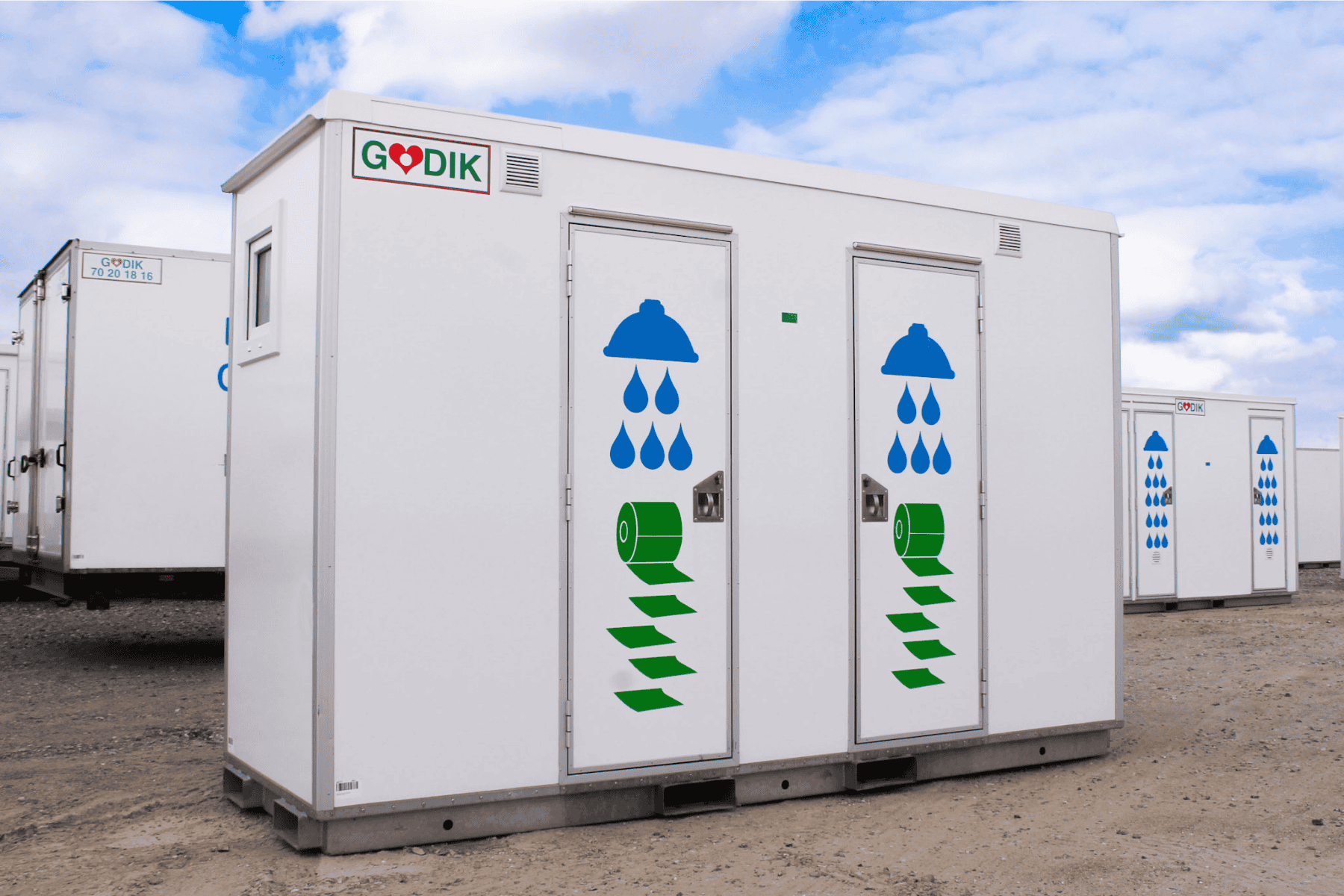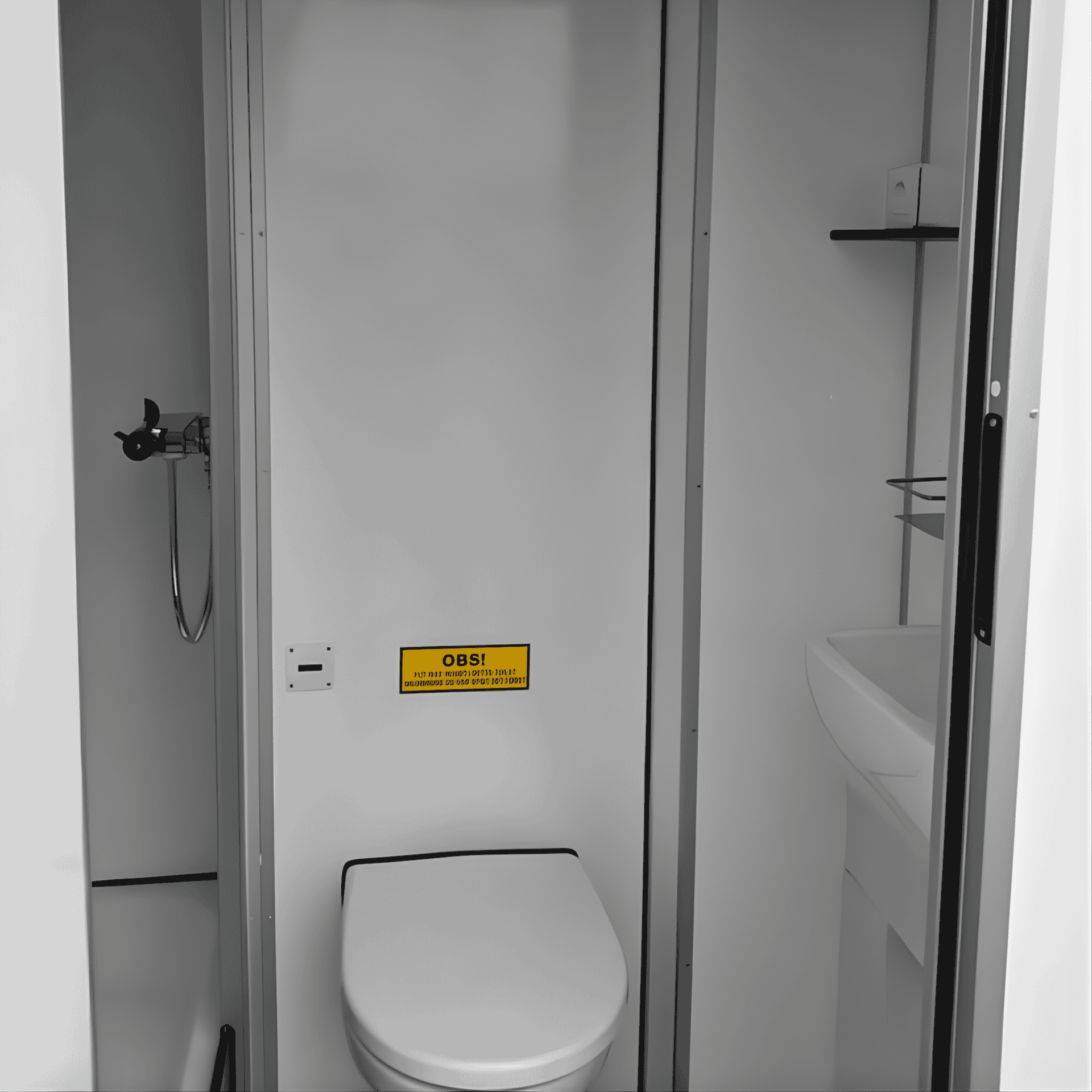 Kompakt bademodul med to fuldt udstyrede badeværelser – ideel til events, festivaler eller midlertidige ophold. Leveres klar til brug med tilslutning til vand og afløb. Godik sørger for opsætning og service under hele lejeperioden efter aftale.