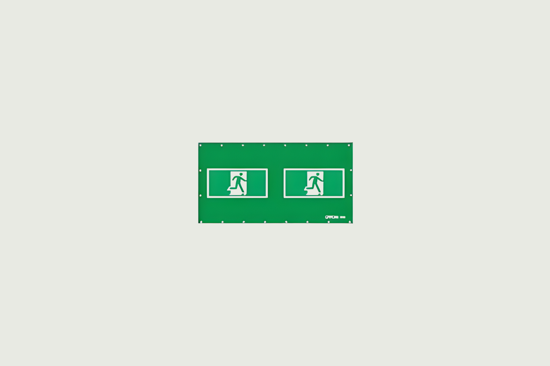 Grønt Nødudgang banner til hegn, med målene 176 x 340 cm.