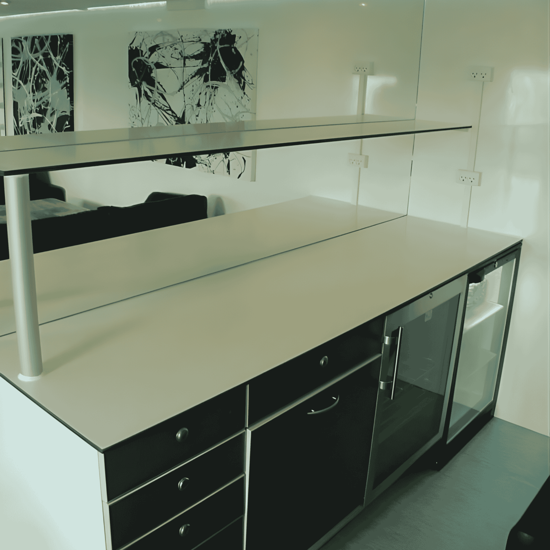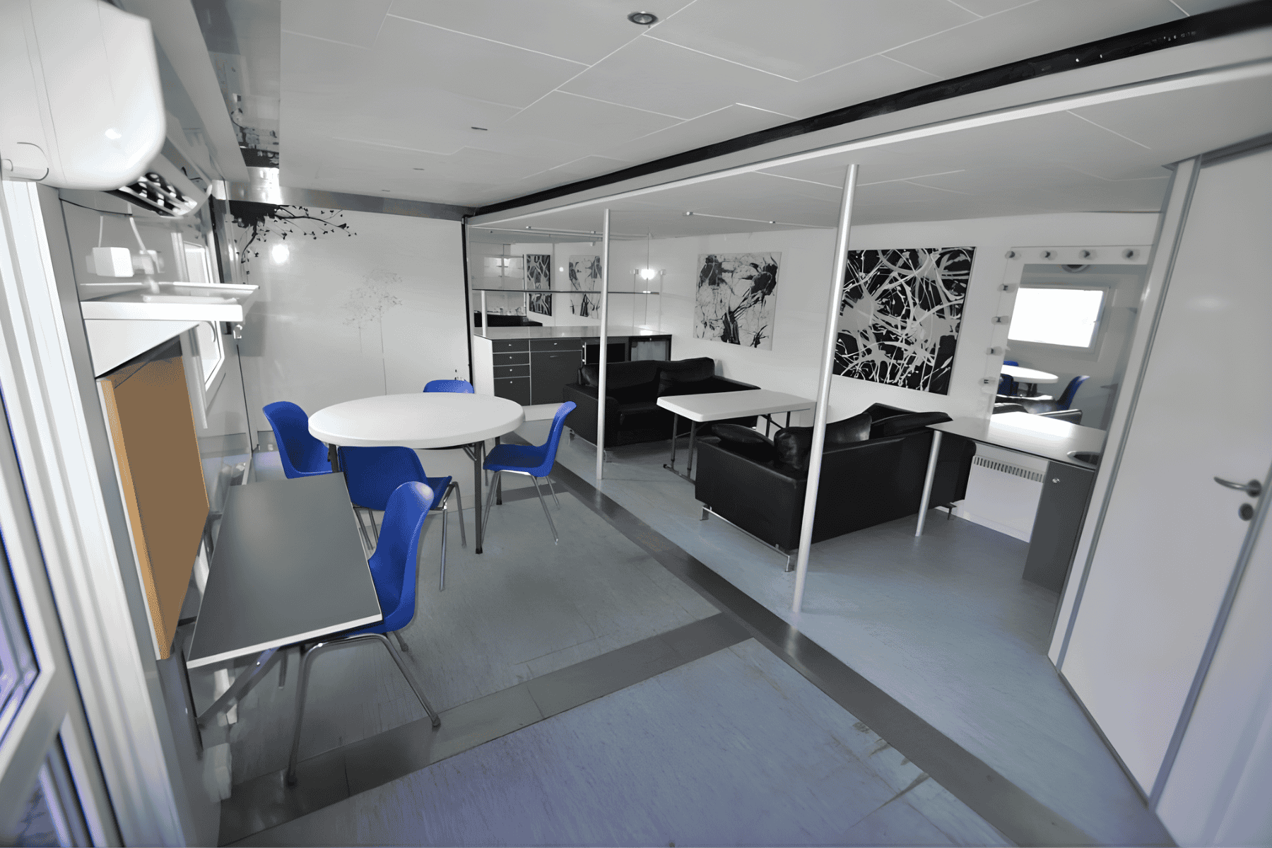 Eksklusiv vogn til kunstnere, bands og udstillinger. Indrettet med komfortabel lounge, køkken og bad. Skaber fede, funktionelle rammer.