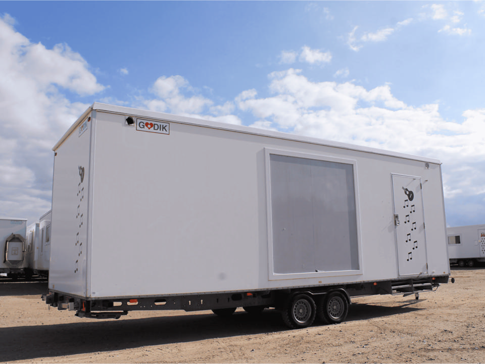 Eksklusiv vogn til kunstnere, bands og udstillinger. Indrettet med komfortabel lounge, køkken og bad. Skaber fede, funktionelle rammer. |