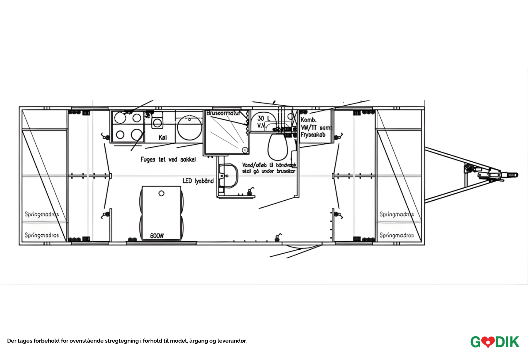 Beboelsesvogn med 4 soverum, køkken, vaskemaskine m.m