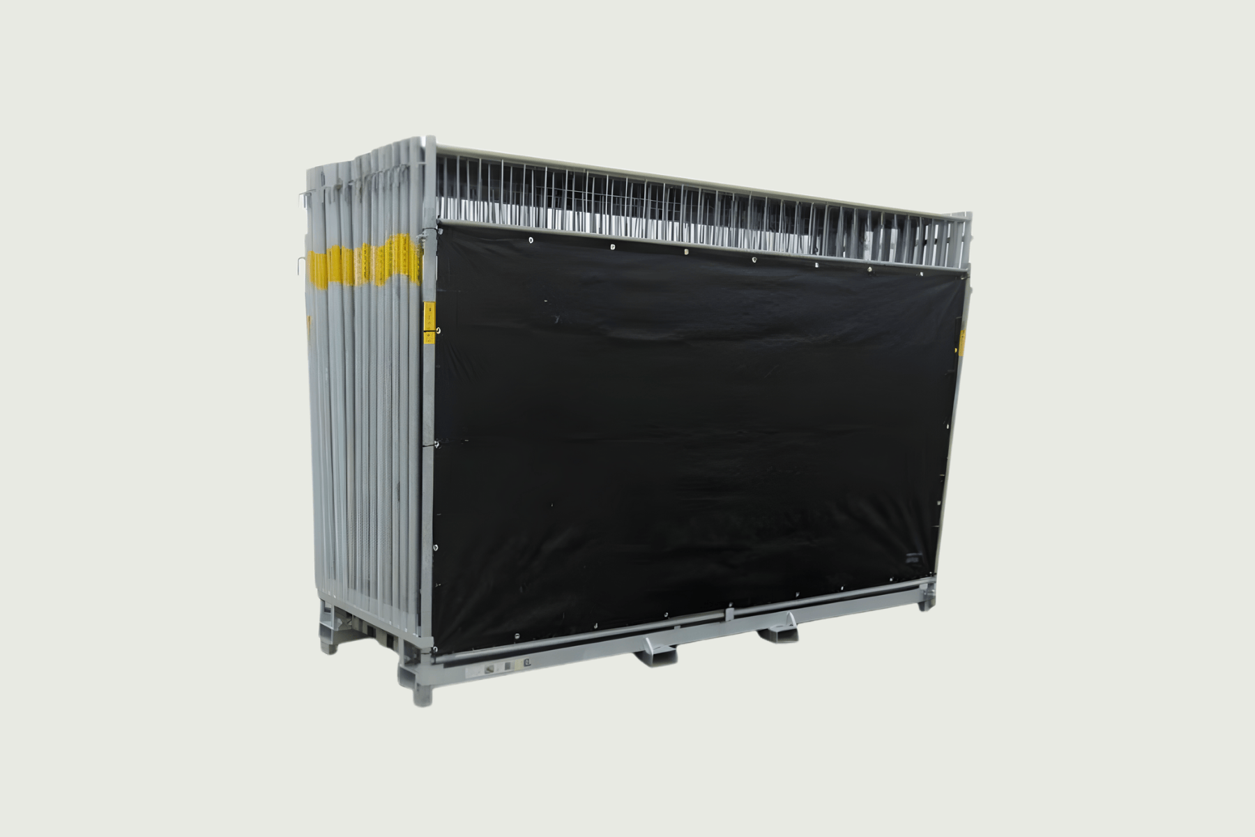 Robust hegn med sort dug, der giver et rent og professionelt udtryk. Bruges til afskærmning af byggepladser, backstageområder eller som visuel barriere ved events og arrangementer.