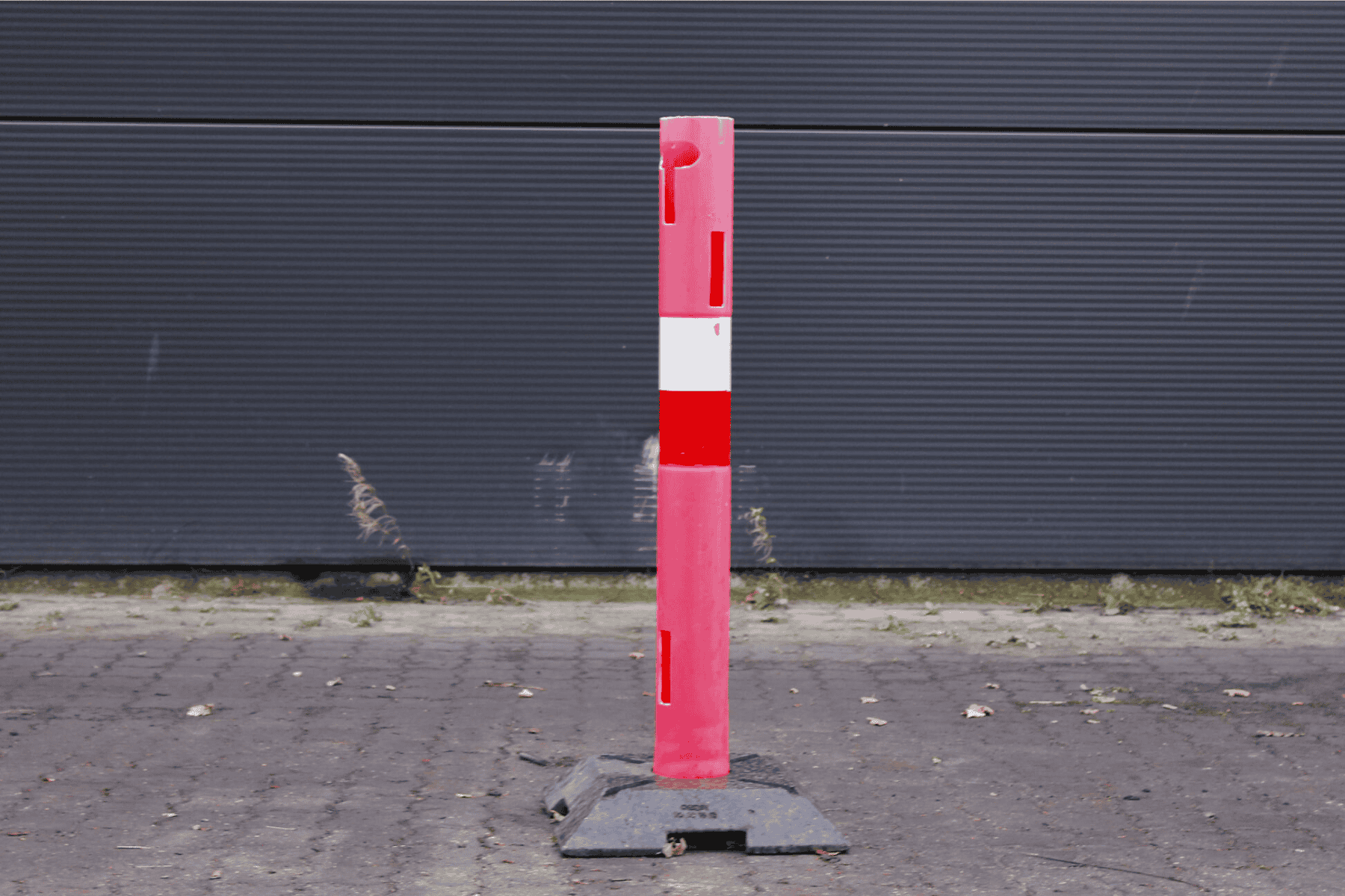 Afspærringspæl med tung fod – ideel til midlertidige afgrænsninger, ruter og parkeringsområder.