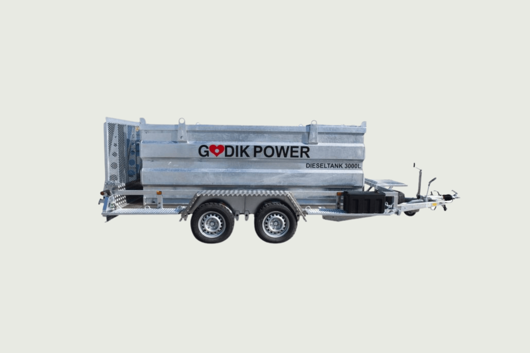 230V pumpesæt til diesel 50L/min. 8 meter slange og automat tankpistol. Med trailer.