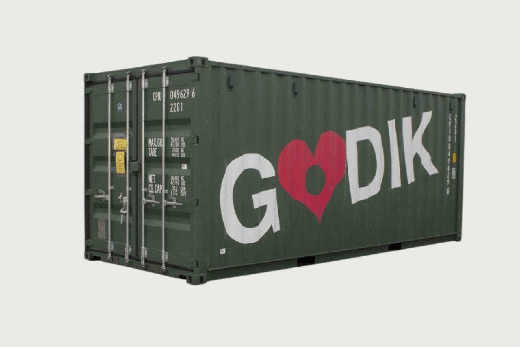 Der medfølger 87,5 meter hegn med klodser, så du kan sikre området omkring containeren. Løfteramme for wirehejs. Aflæsses med gavldørerne bagud.