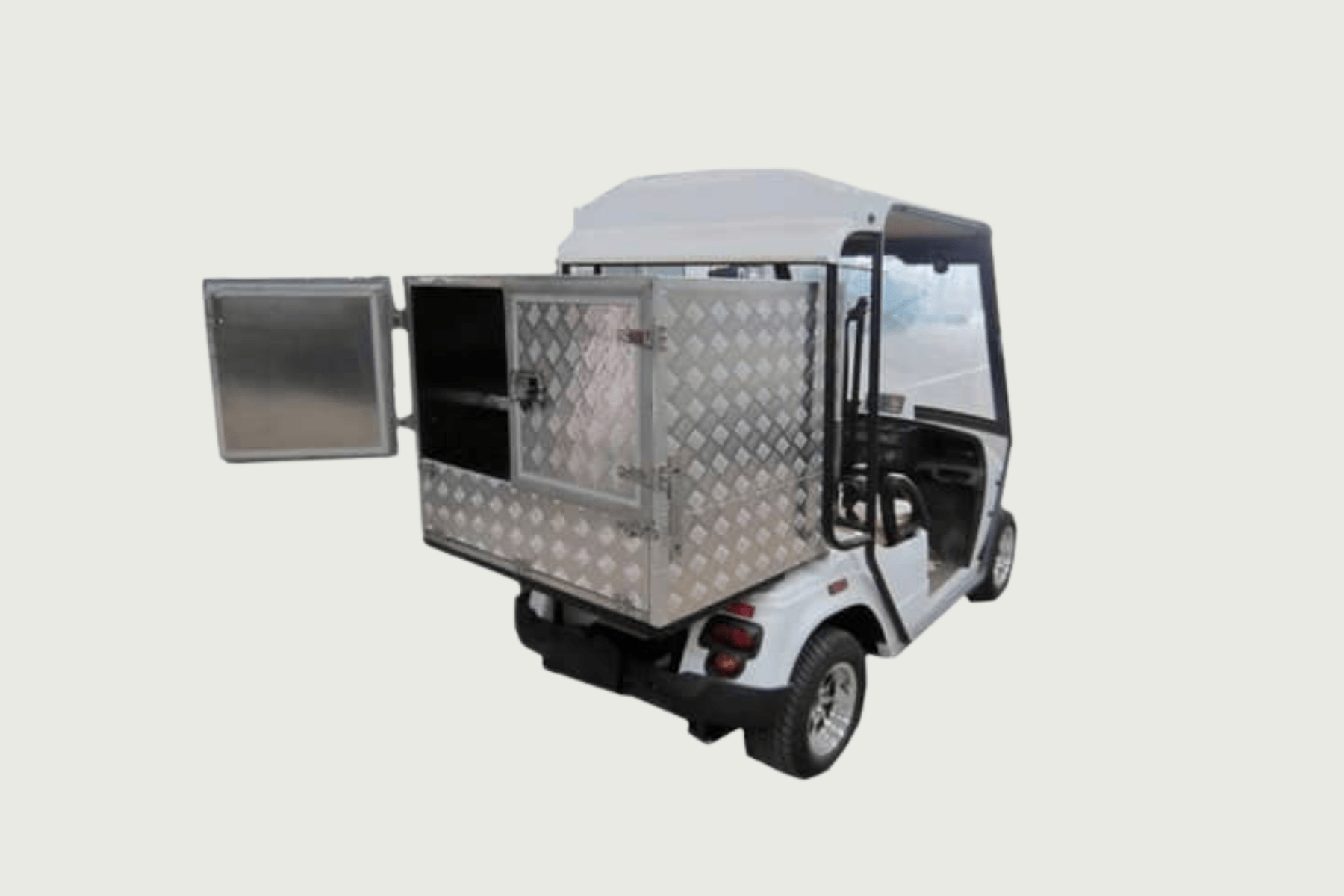 Cargobox med hylde og låsebeslag med 6 mm hul for hængelås.