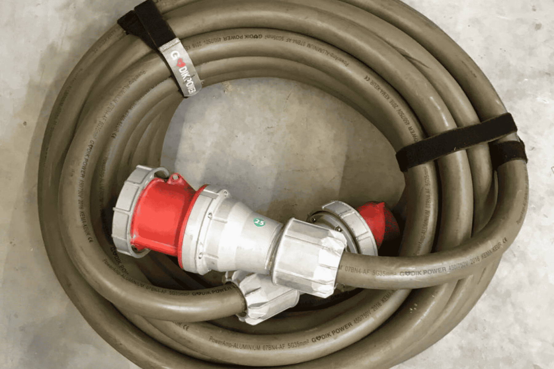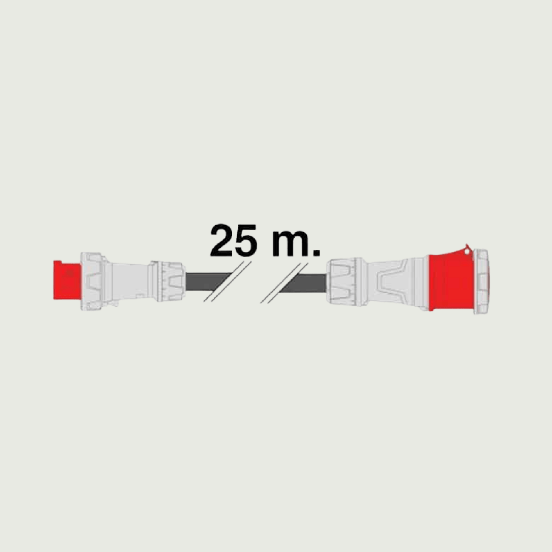 25 meter el-kabel, 3x 125A/400V rød CEE-stik.