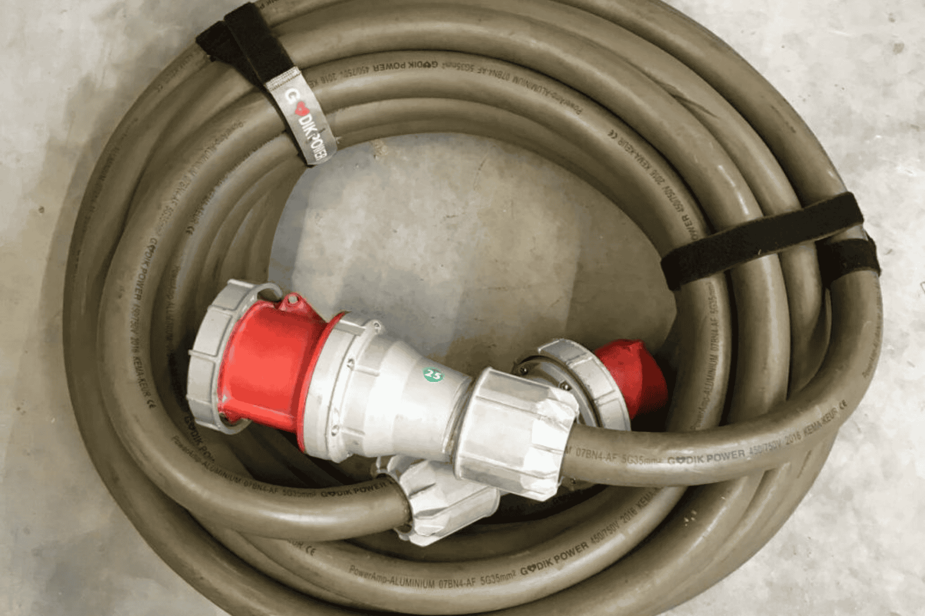50 meter el-kabel, 3x 125A/400V rød CEE-stik.