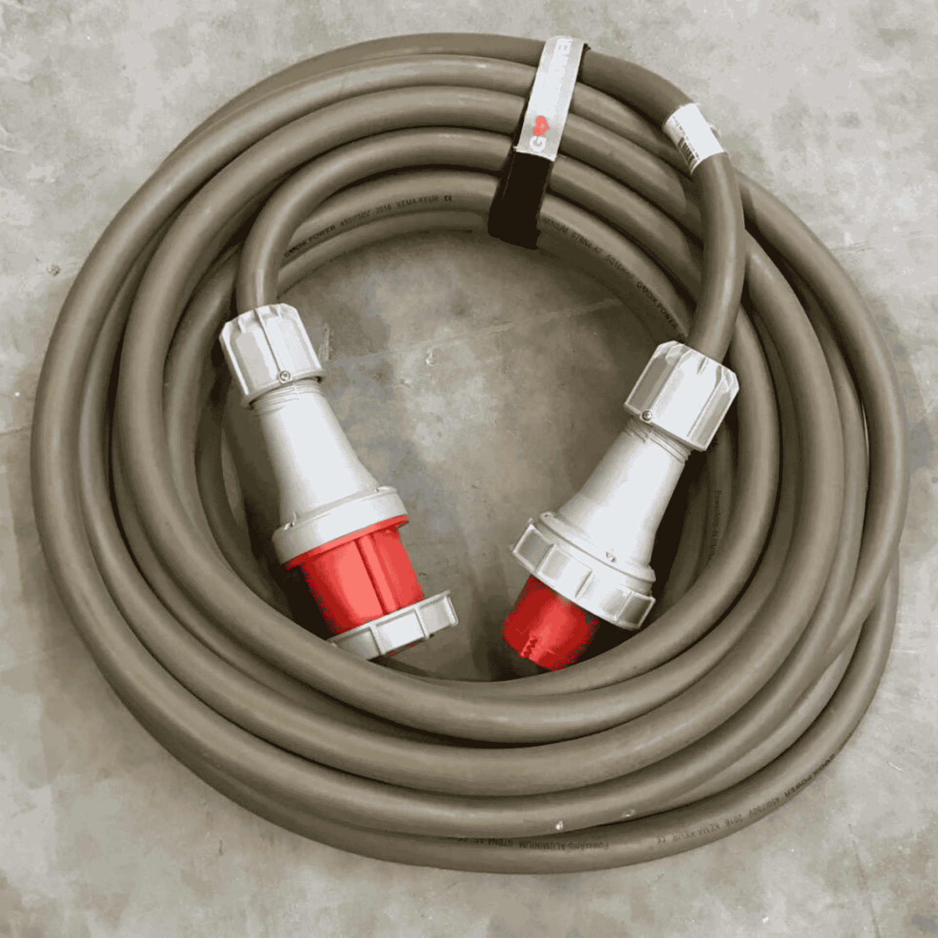 75 meter el-kabel, 3x 63A/400V rød CEE-stik.