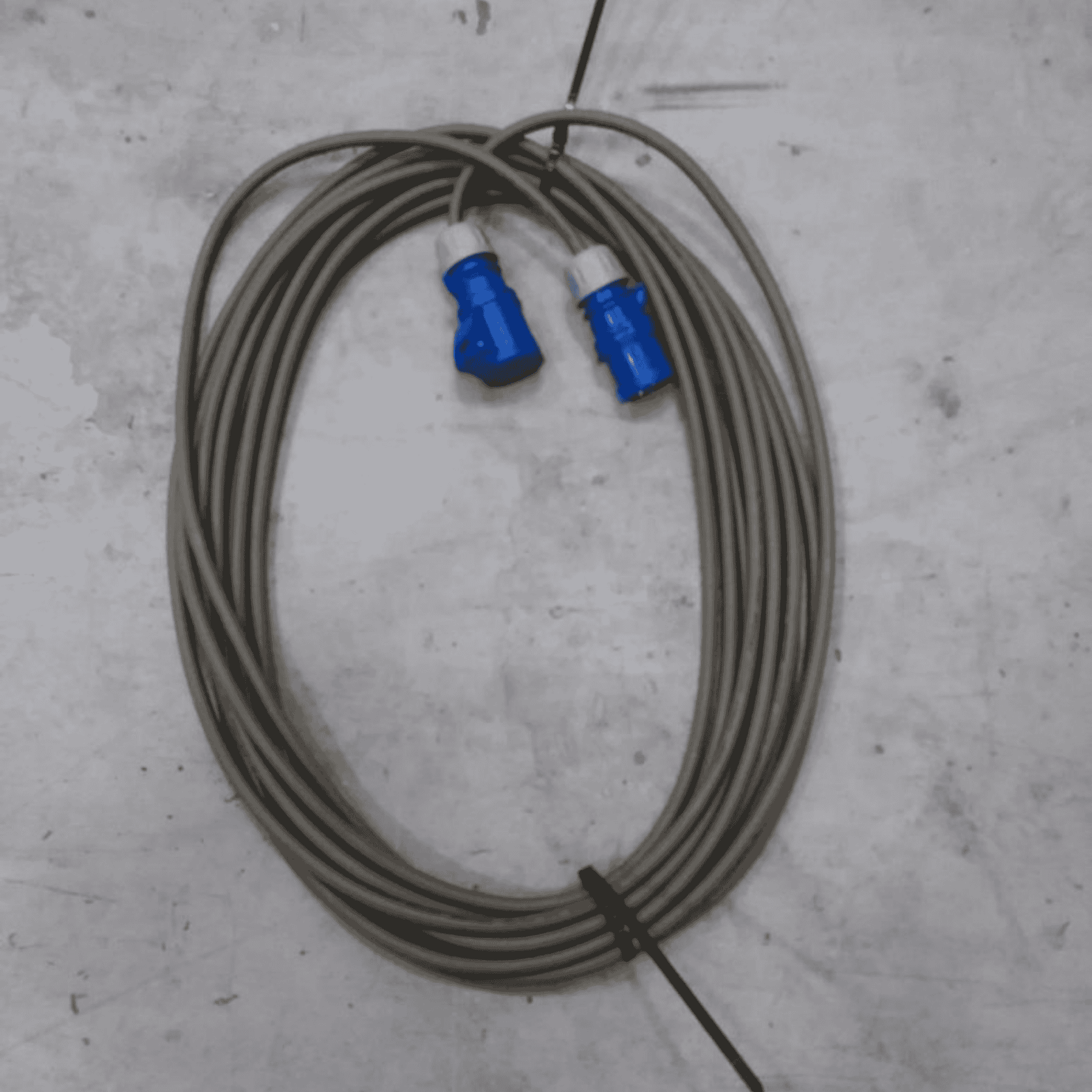 10 meter el-kabel, 1x 16A/230V blå CEE-stik.