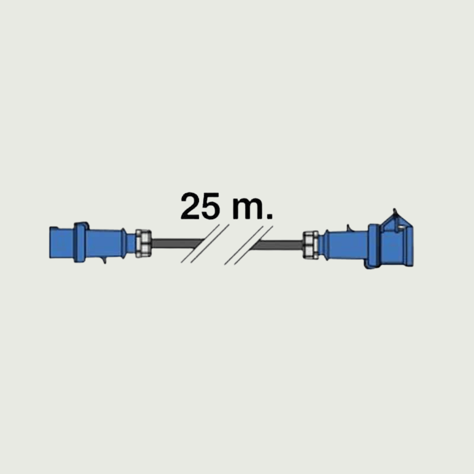 25 meter elkabel, 1x 16A/230V blå CEE-stik.