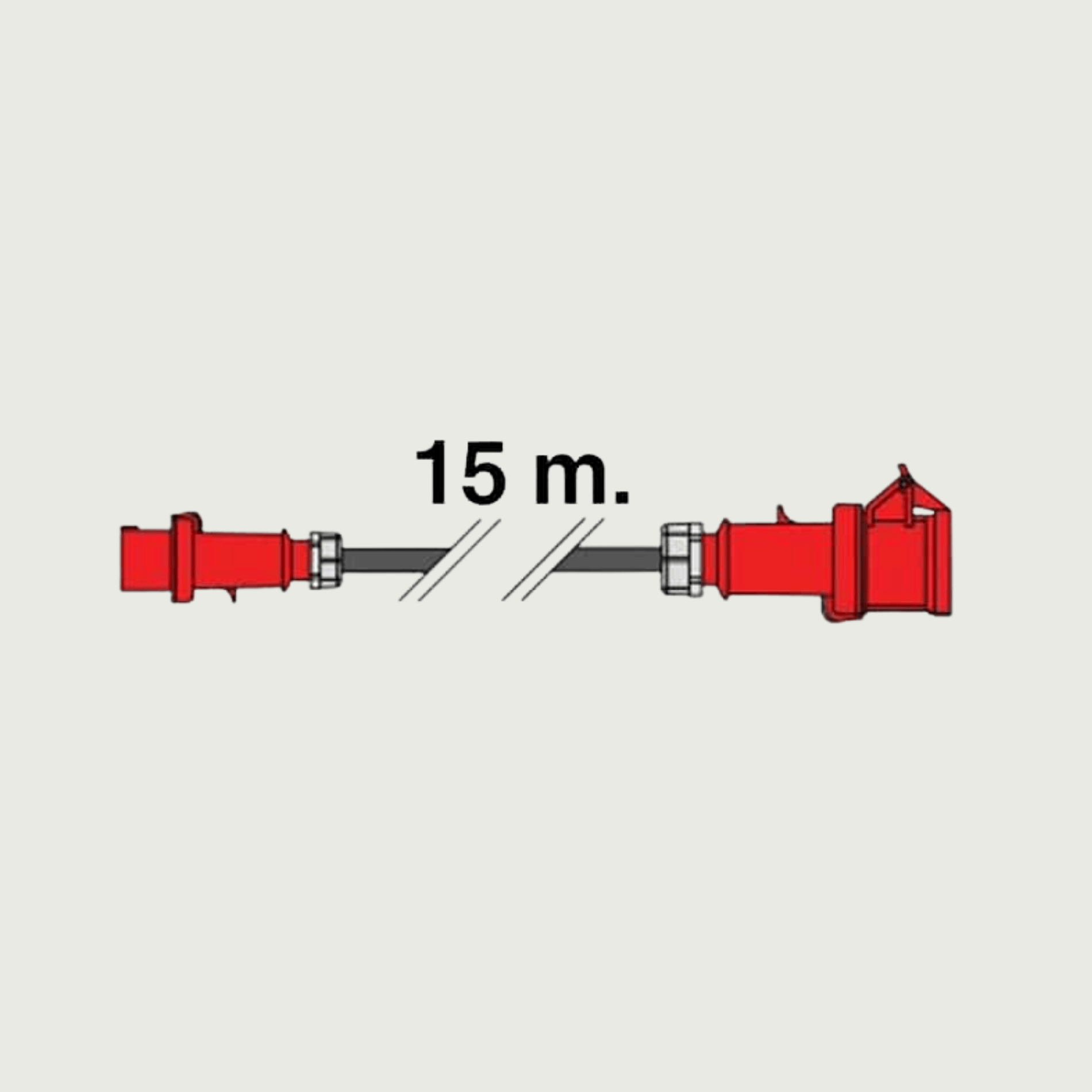 15 meter el-kabel, 3x 16A/400V rød CEE stik.