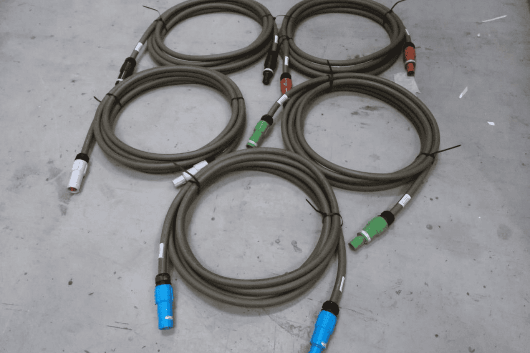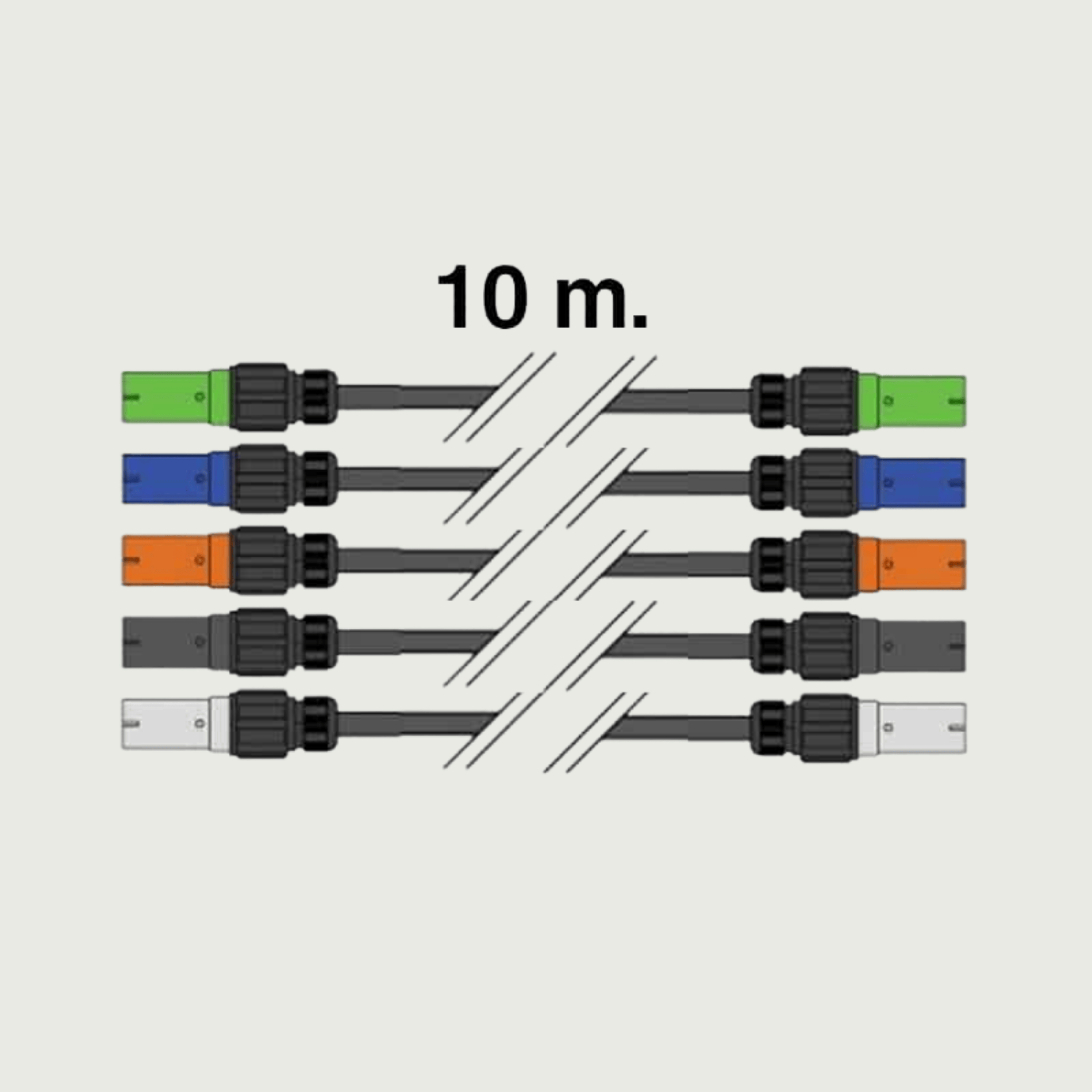 10 meter 400V 120 mm², 5 stk. enkeltleder, PowerLock stik han til hun.