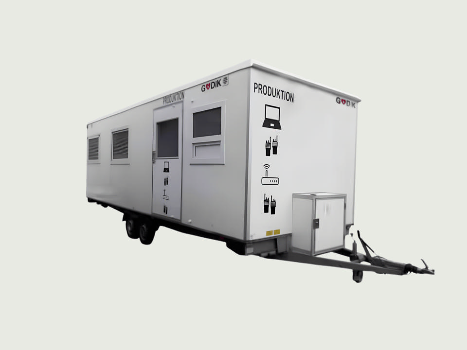 Godiks produktionsvogn giver dig fuldt kontrolrum på hjul – med GPS-sporing af medarbejdere, mulighed for overvågning og komplet radiokommunikation. En fuldt udstyret vogn til sikker og effektiv eventstyring. |