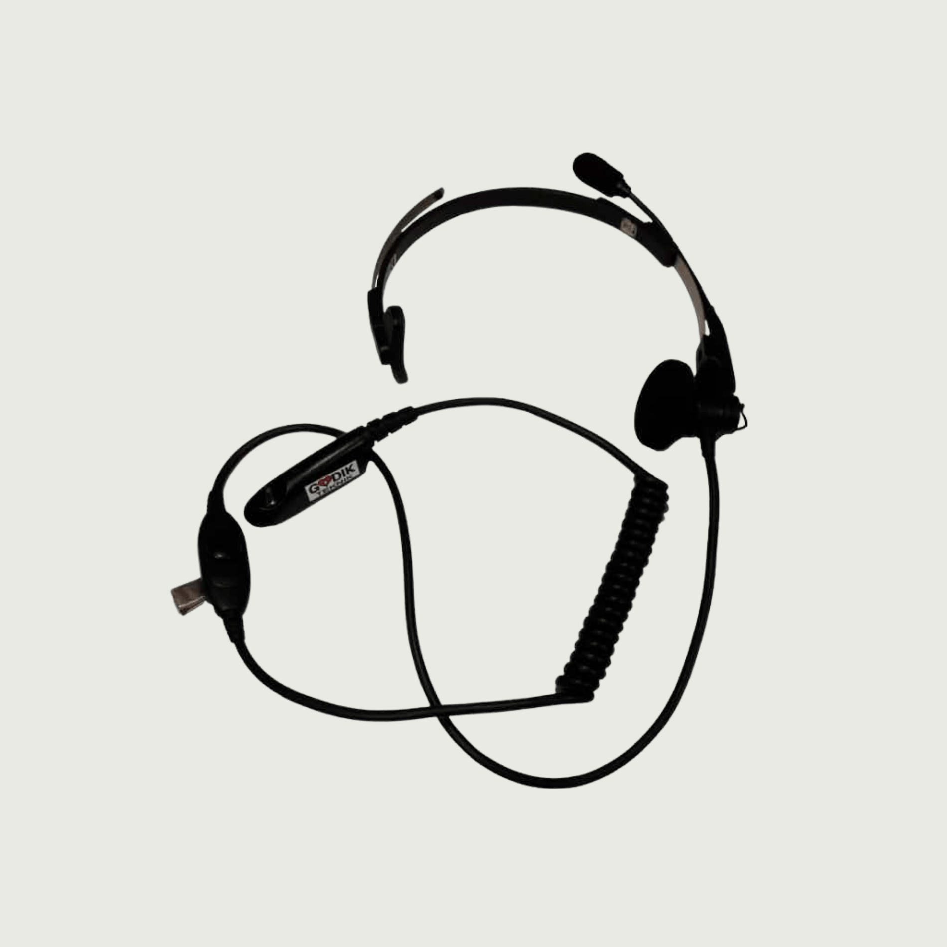 Let headset med tasteknap, mono høretelefon og justerbar mikrofon. For analog radio.