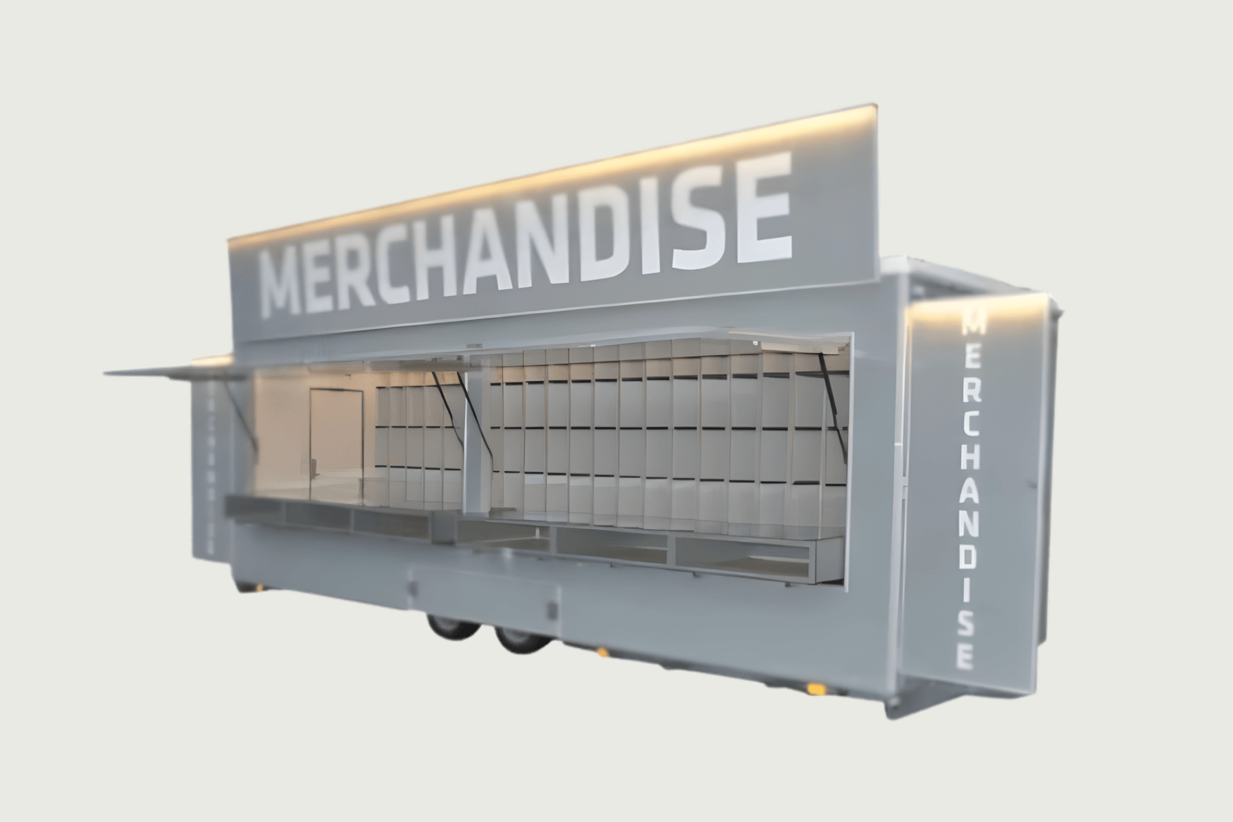 Mobil salgsvogn til merchandise-salg – rummelig, fleksibel og hurtig at opstille. Skabt til events og festivaler med stort publikum.