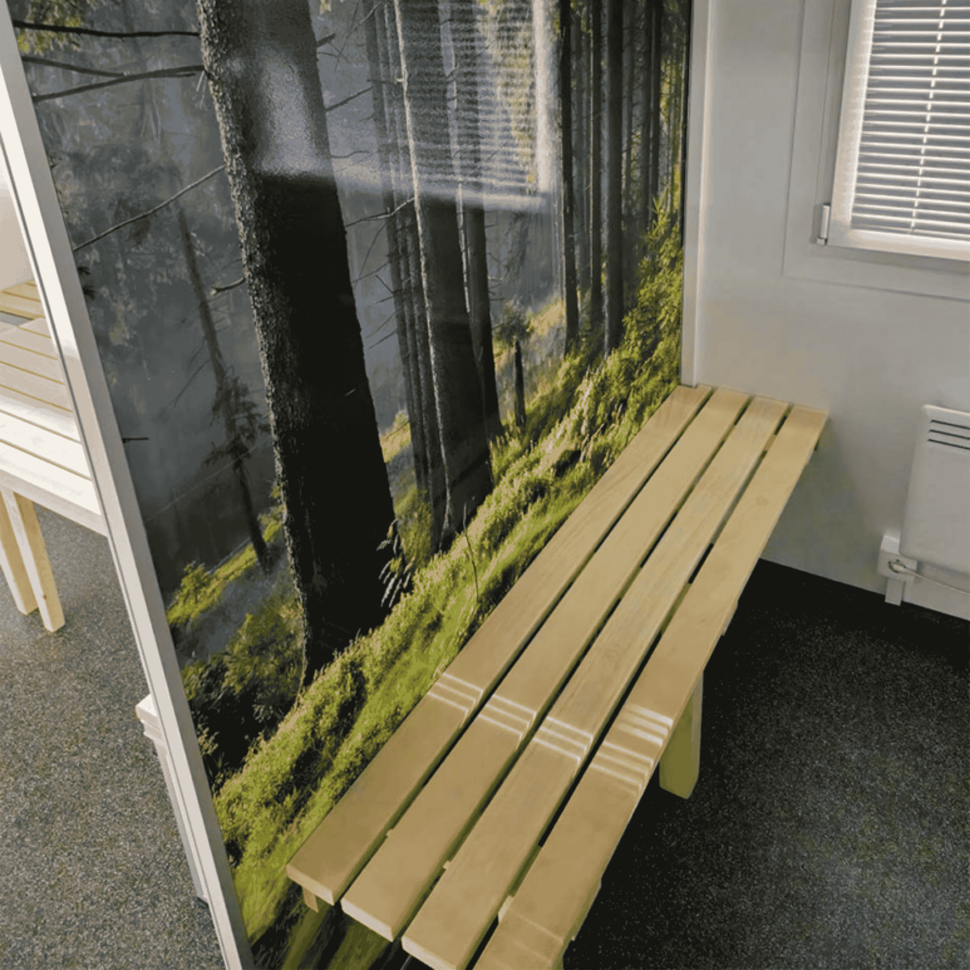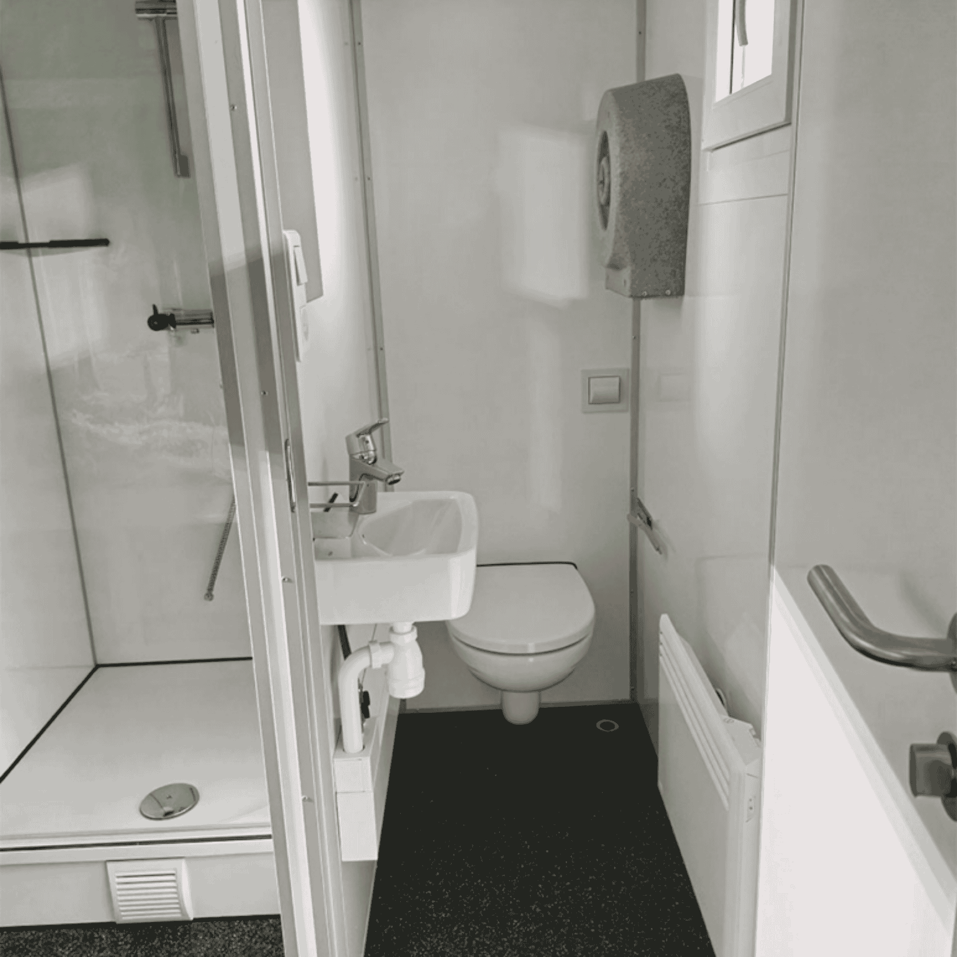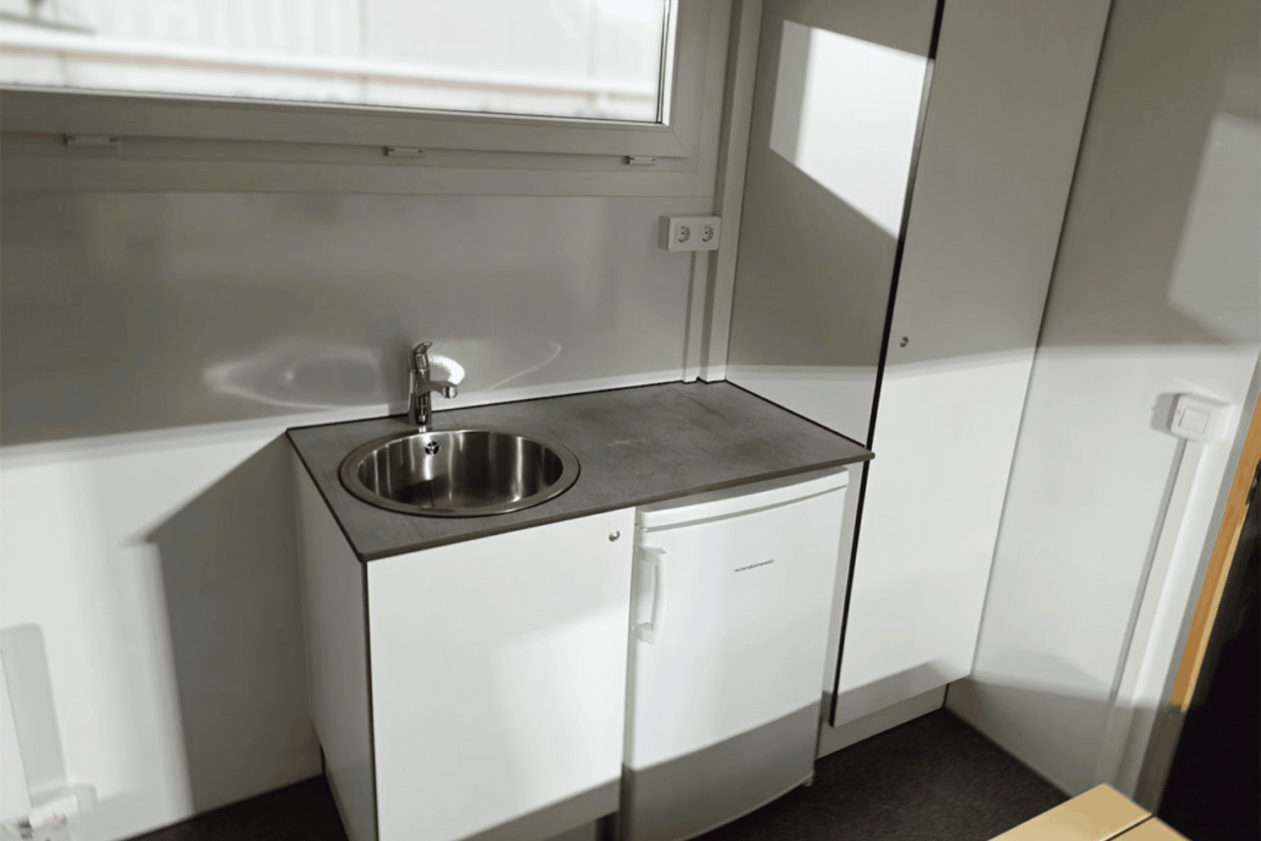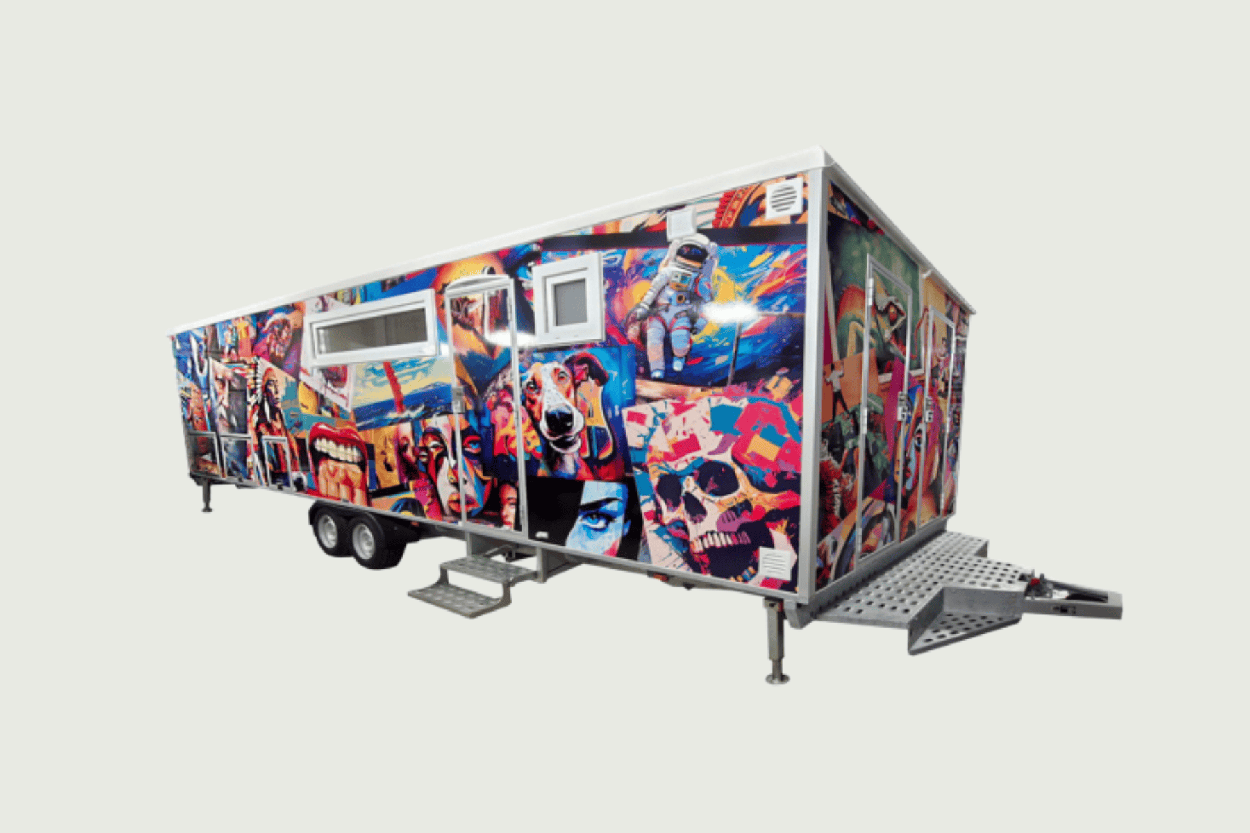 Vandvarmer. Solpanel. Saunavovn: 9 Kw gas. Kasse f/ 2x11 kg gasflasker m/ automatisk omskifter. Stor saunavogn med panorama vinduer, solceller, saunarum med 4 saunabænke og bluetooth højtaler. Omklædning og baderum med 2 bad, 1 vacuumtoilet, 1 bænk med skohylde. Indgangsparti med bænk, borde, køleskab, skab, skraldespand, håndvask.