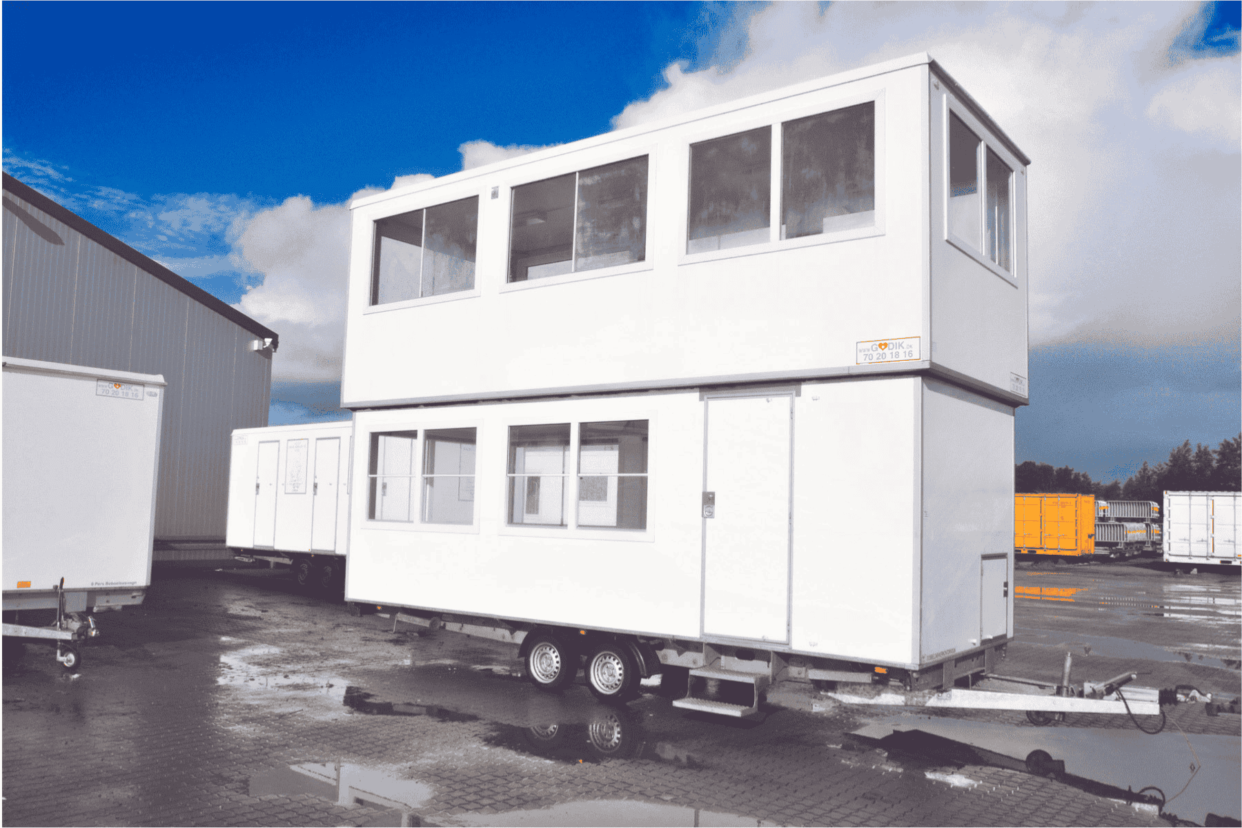 To etagers / dobbeltdækker kontorvogn med stor kapacitet og fleksibel indretning. Giver overblik over pladsen ved store projekter og events. Oplagt til festivaler, grand prix og større events