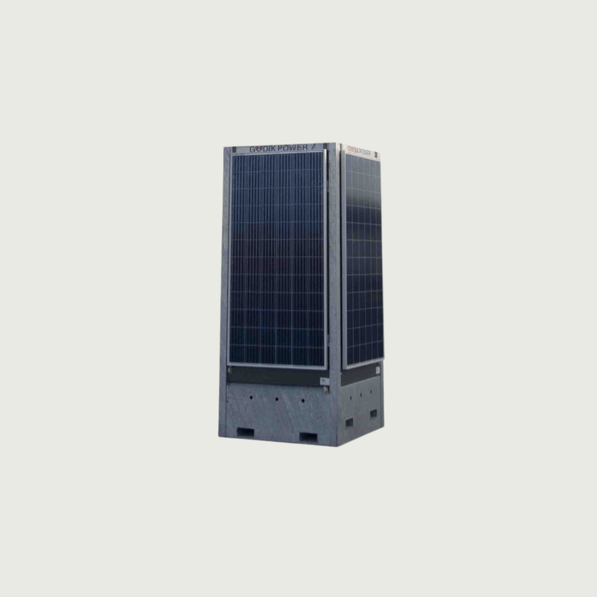 Hos Godik kan du at leje solpaneler der er beregnet til at oplade det indbygget batteri i vores overvågningstårne med 100% grøn energi. Ved at kombinere modulerne, så fungerer de som 2 off the grid selvstændige moduler.