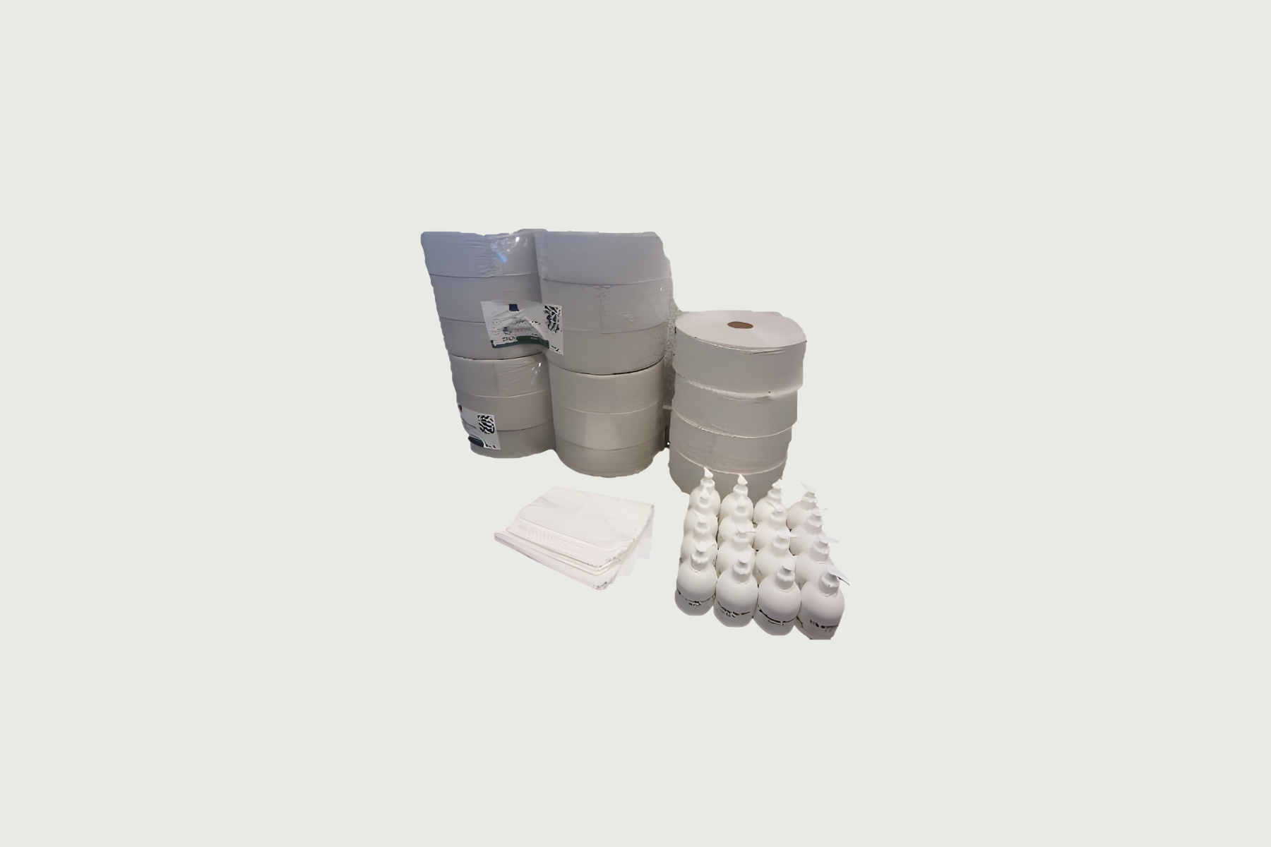 Sæbedispenser med desinficerende håndsæbe eller Alcogel.