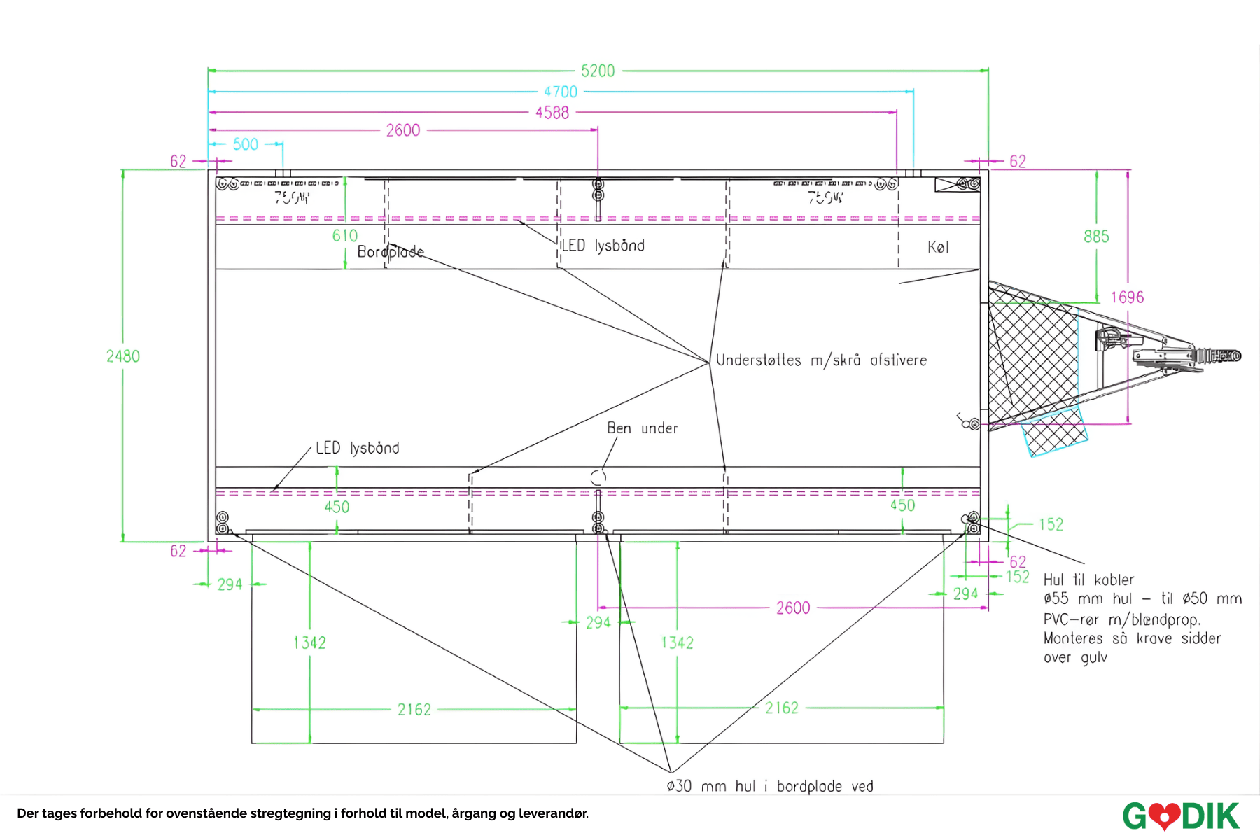 - 6 salgsluger med plads til 6 ekspedienter m/disk.