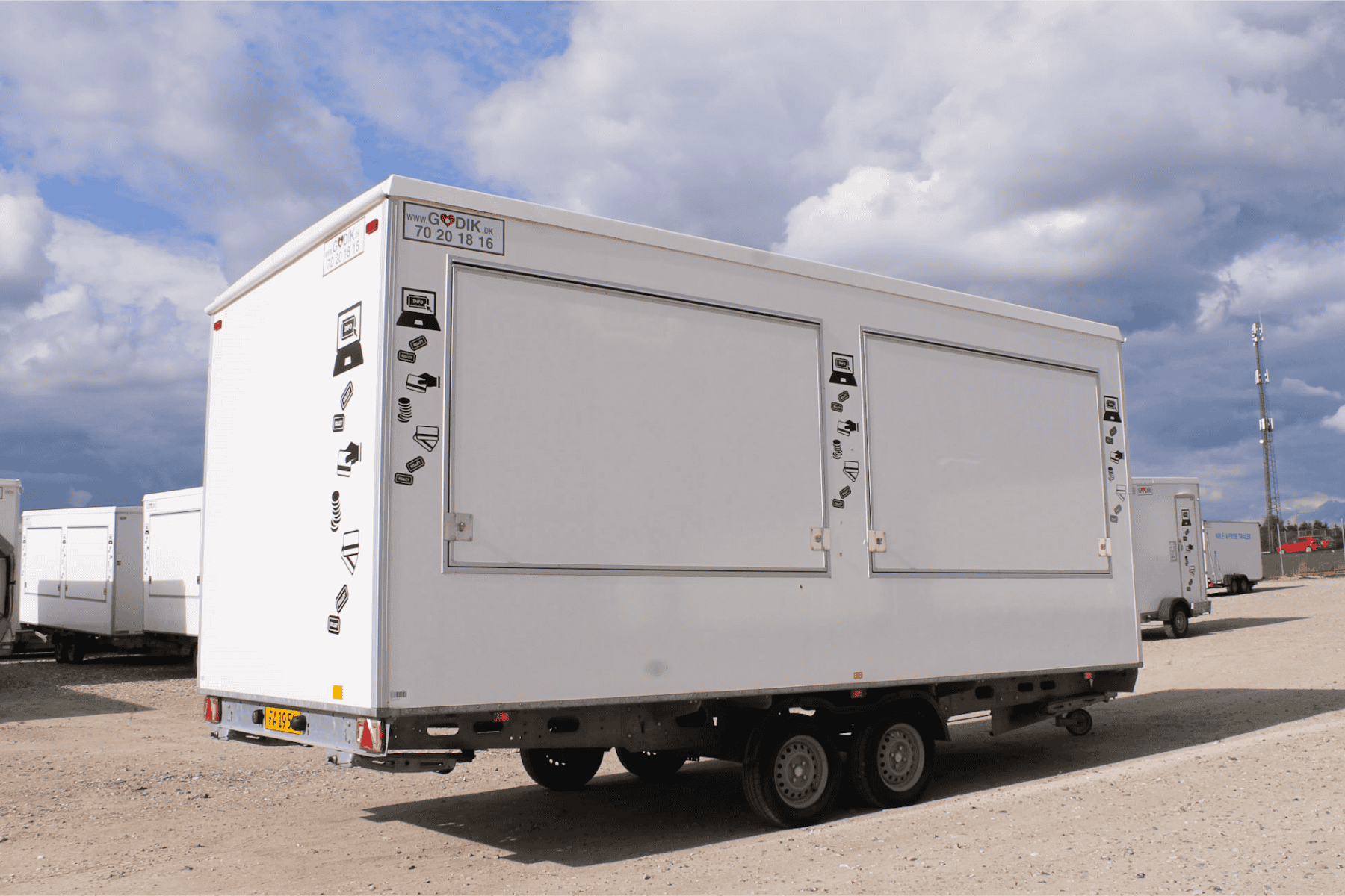 Billetvogn med seks salgsluger – designet til store festivaler og events med mange gæster. Giver hurtig ekspedition og god arbejdsplads for personalet.
