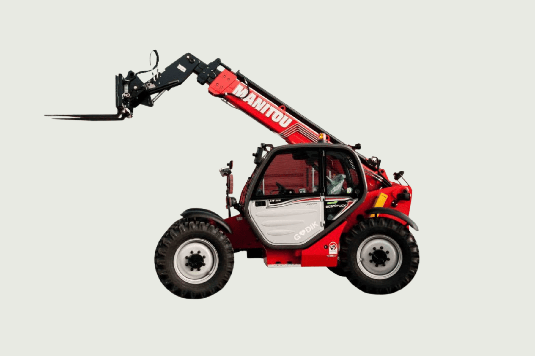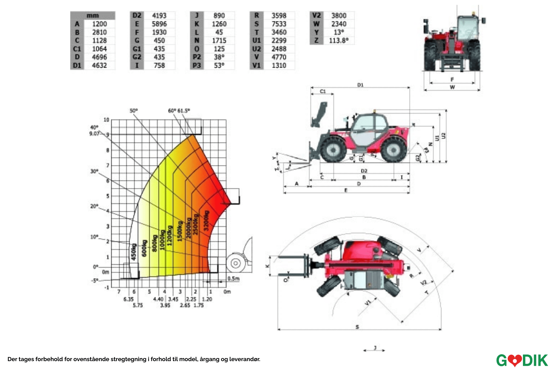 Løfteevne: 3,2 ton. Løftehøjde: 9 meter.